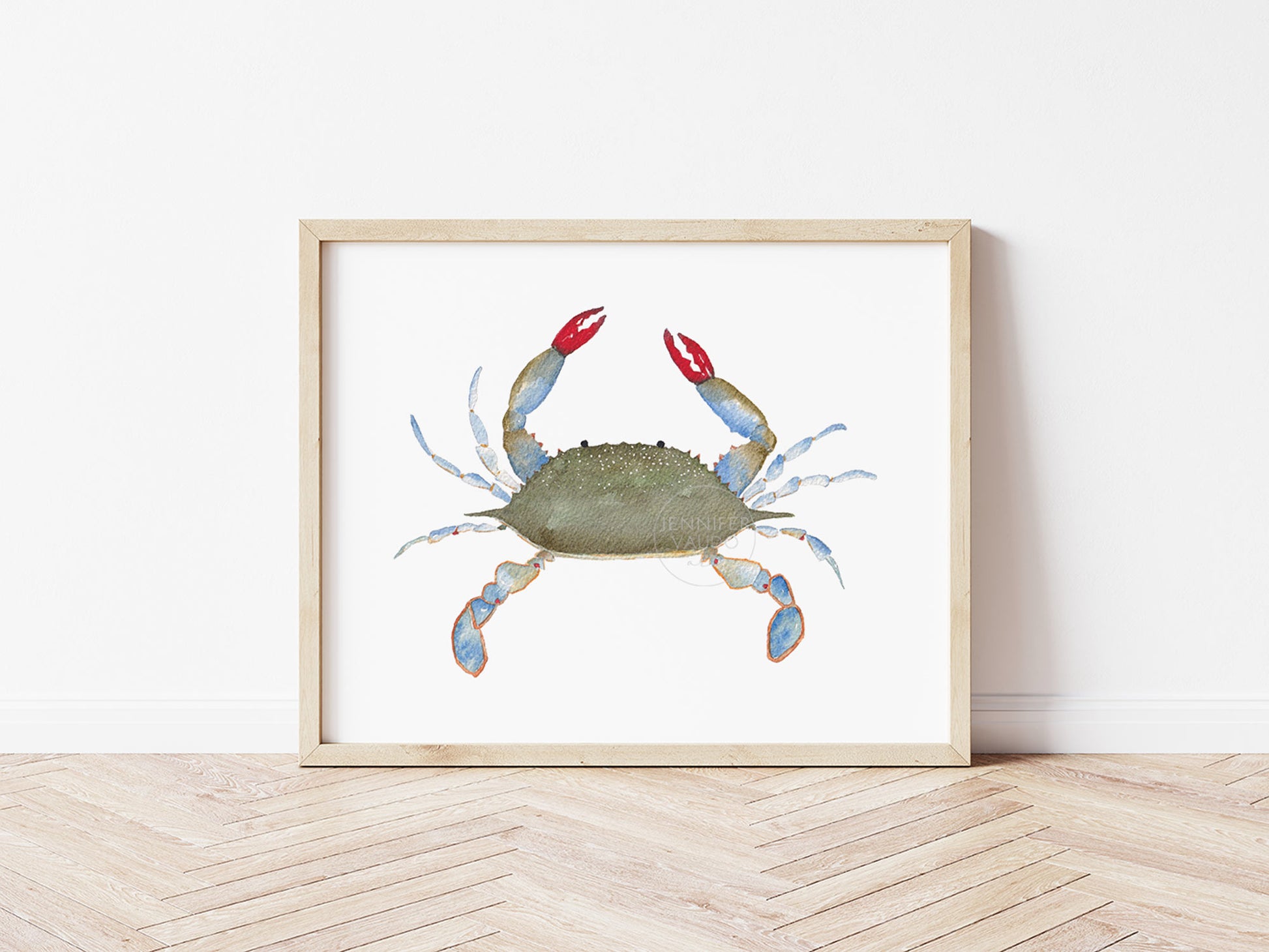 Blue Crab Watercolor Art Print | Coastal Nautical Wall Decor | Ocean Life Wall Art