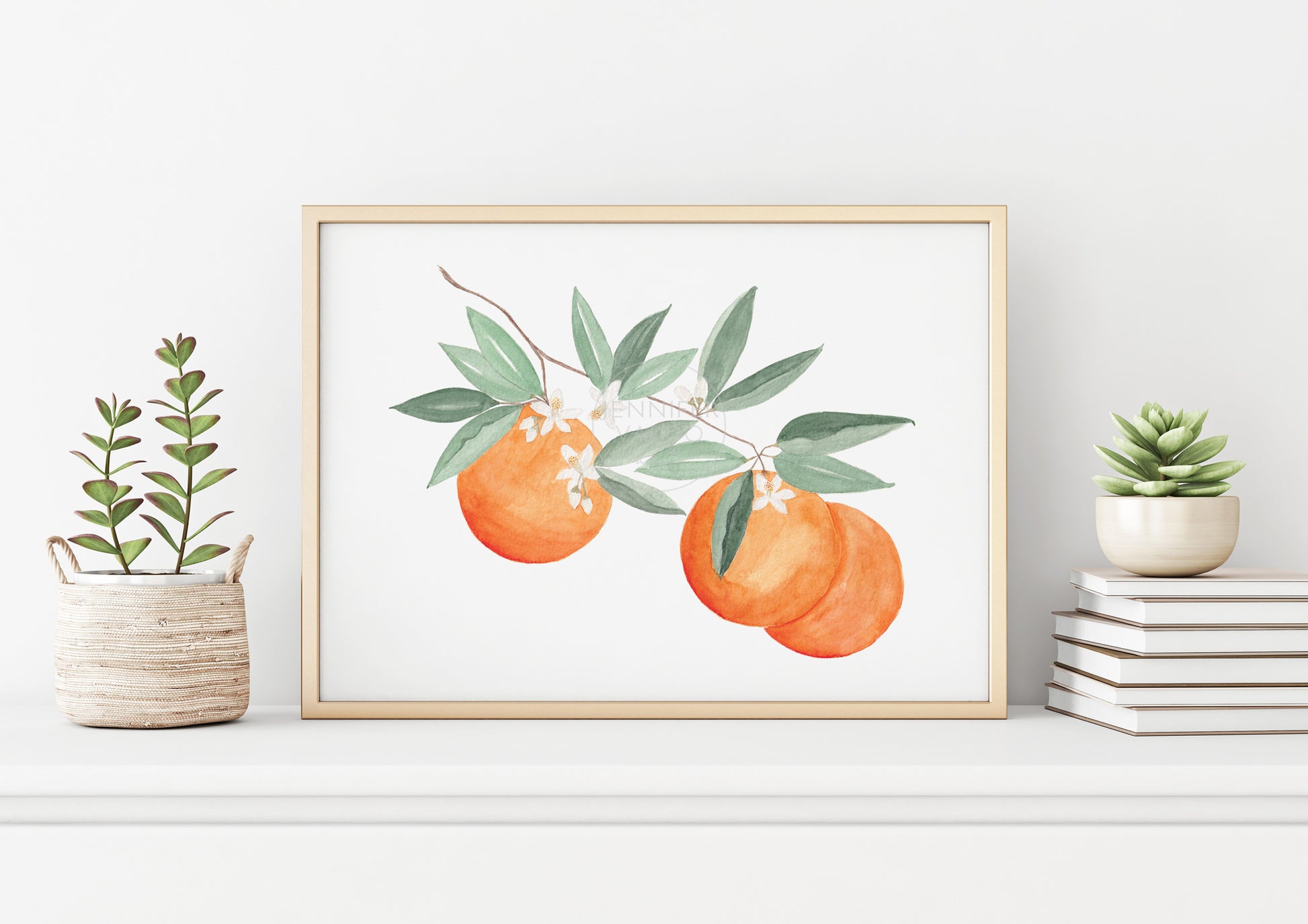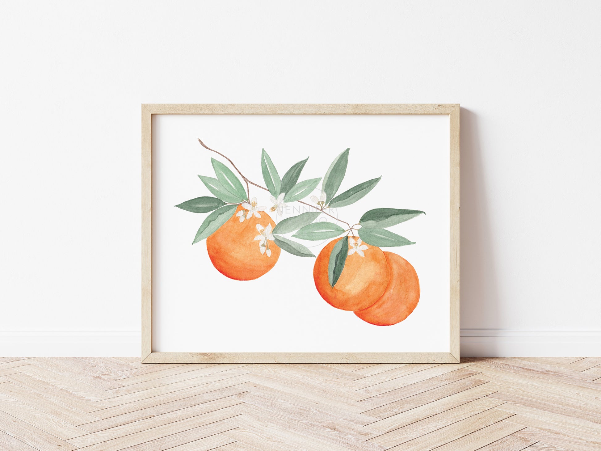Enjoy oranges year round with this watercolor print. Add a little pop of color to any space in your home with these bright oranges!