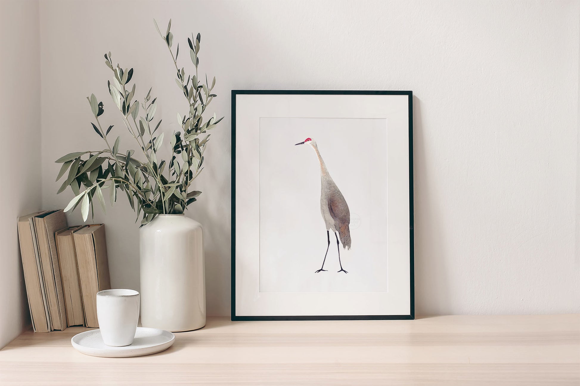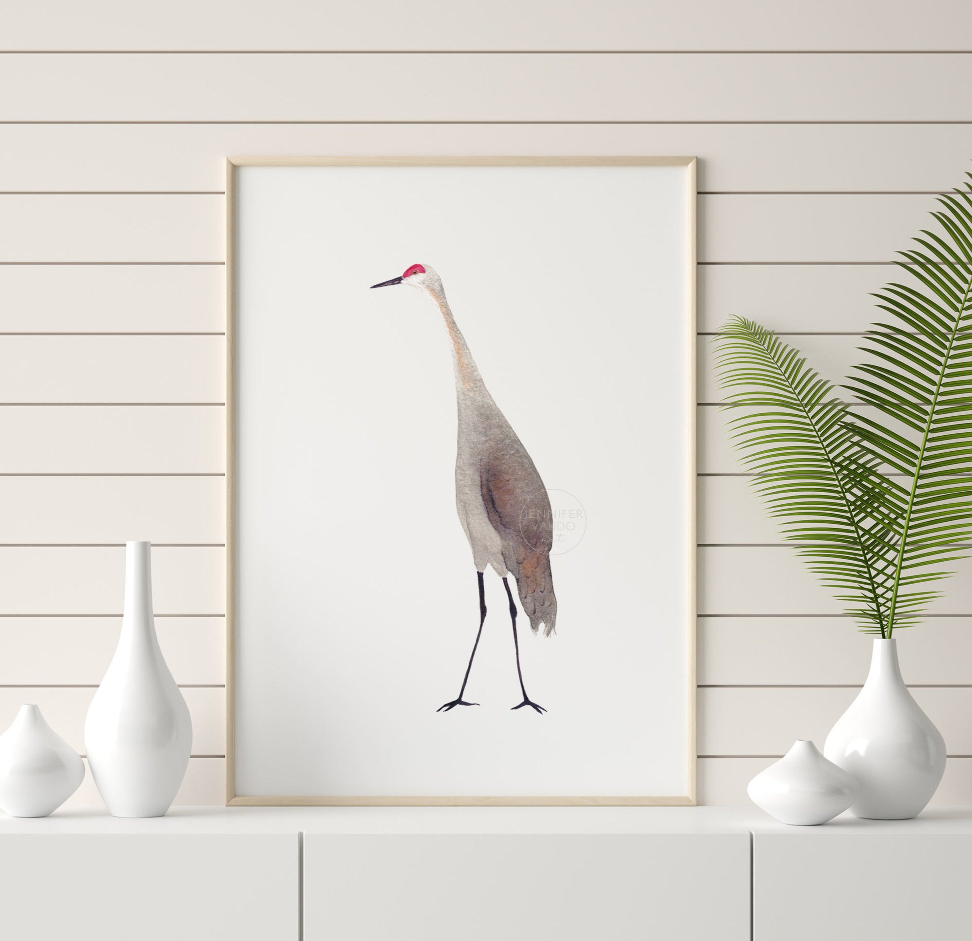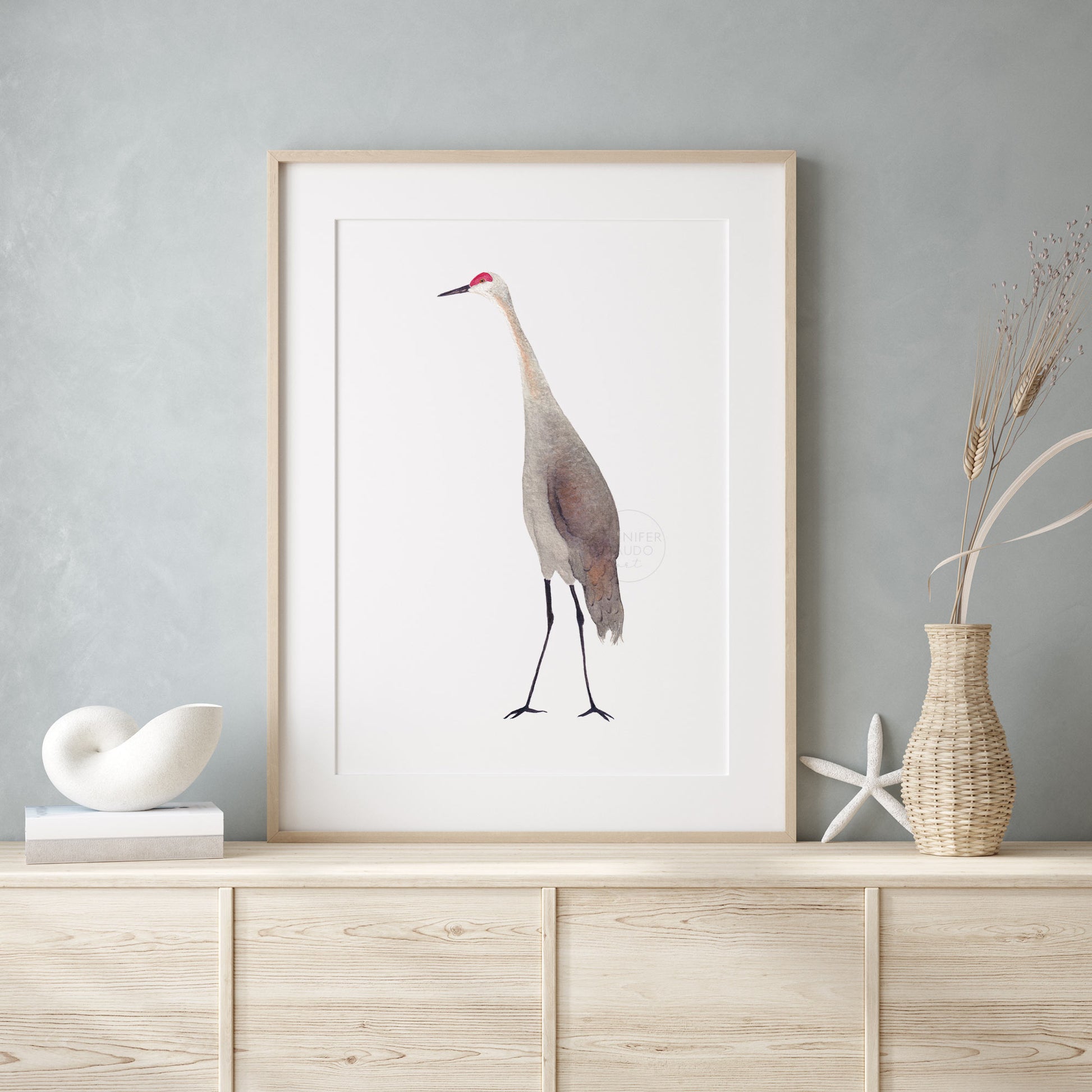 Sandhill Crane Wall Art, Bird Home Decor, Crane Watercolor Print