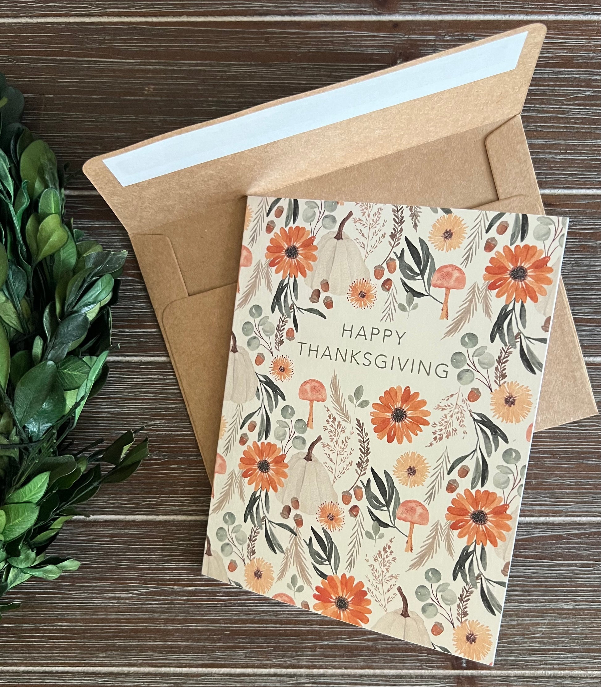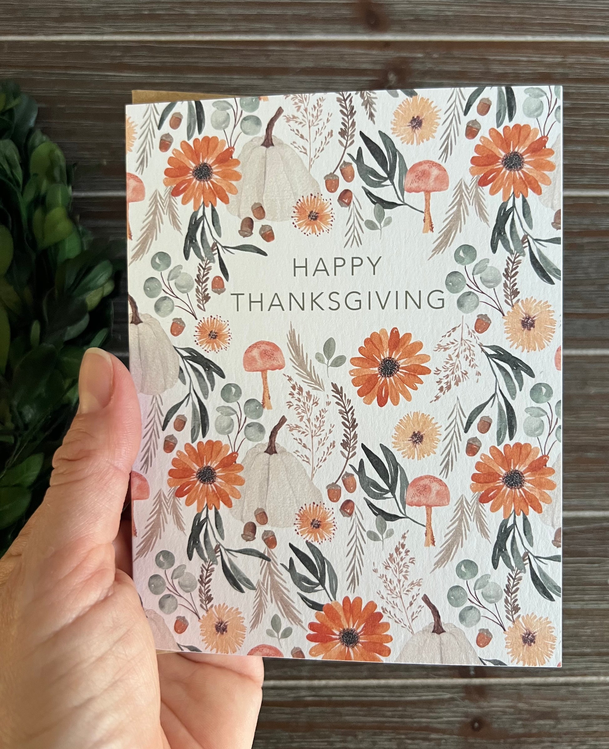 Thanksgiving Card, Happy Thanksgiving, Fall, Autumn, Cozy Vibes, Cabincore, hand-painted print